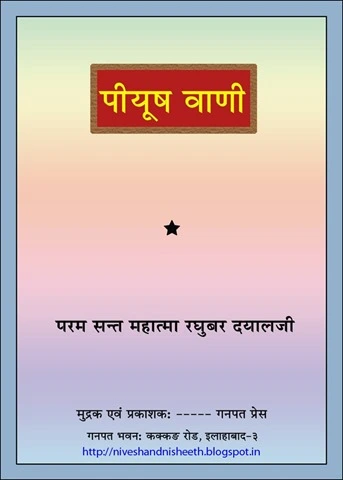Following is the cover page of a book named ‘Piyush Vani’. It is a great collection of spiritual preaching, that were delivered to his disciples by ‘Mahatma Raghubar Dayal Ji Maharaj’ (Chachaji)) in his lifetime.